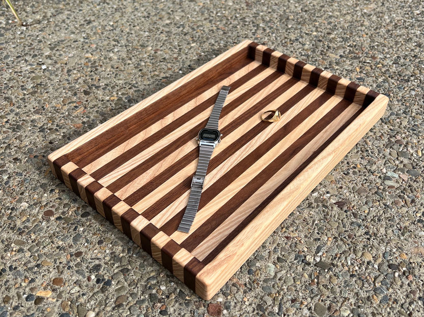 Striped ash and walnut tray.